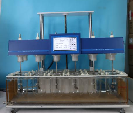 溶出试验仪是按照《中国药典》和《美国药典》的要求而设计的新型药物溶出试验仪。该仪器采用双排12杯12杆结构形式,可同时进行两个批次的药物溶出试验,仪器机头电动升降,采用大液晶显示屏,菜单式操作。仪器的转杆转动、机头升降、试验计时各自独立操作,符合药典规定。其“程控实验”及“基本实验”功能选项可方便于常规重复性试验或研究性试验。